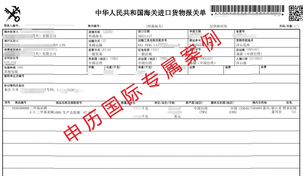 二甲基亚砜报关代理,二甲基亚砜清关代理,二甲基亚砜进口代理
